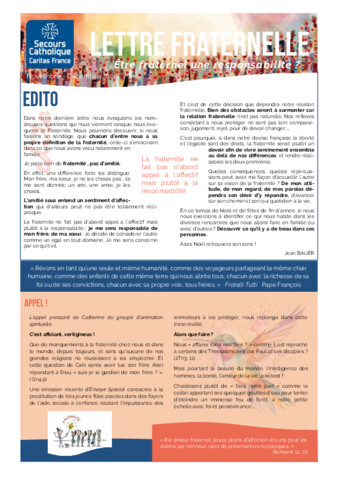 Cette Lettre Fraternelle de fin d'année nous questionne sur la fraternité : être fraternel, une responsabilité ?
